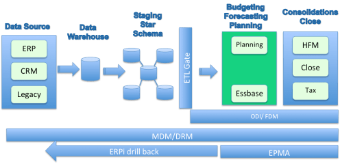 2. The Oracle Cloud only addresses a small piece of the EPM picture.  Lets’ face it… Hyperion in many cases is not the book of record. It is a place to consolidate many data sources in a way to analyze that data.  So if the source systems are on-premise, does it make sense to send all of your data to a cloud service?   Lets look at the entire EPM story:
