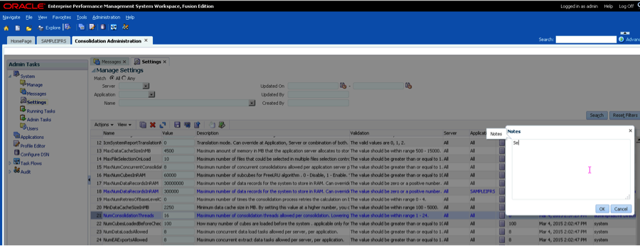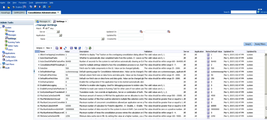 - Parallel threads. Historically HFM was maxed at 8 Threads for consolidations. And, to be honest, they did not scale all that well. If you had an 8 CPU server that was using all 8 threads, you would see the %utilization of the CPUs dwindle as they scaled out. During large consolidations, it was common to see the first CPU at 100% and the last CPU only being used 20%. In 11.1.2.4, the 8 thread limitation has been removed and the calculation engine can now scale with all available CPUs. Oracle has tested this on servers with over 60 cores and has seen uniform distribution. Of course, remember that this dependent on the design of the application as well. You can only parallelize if the application is written in a way that it is possible. Regardless, these new advantages will significantly change the way consulting organizations architect HFM applications and the HFM servers.