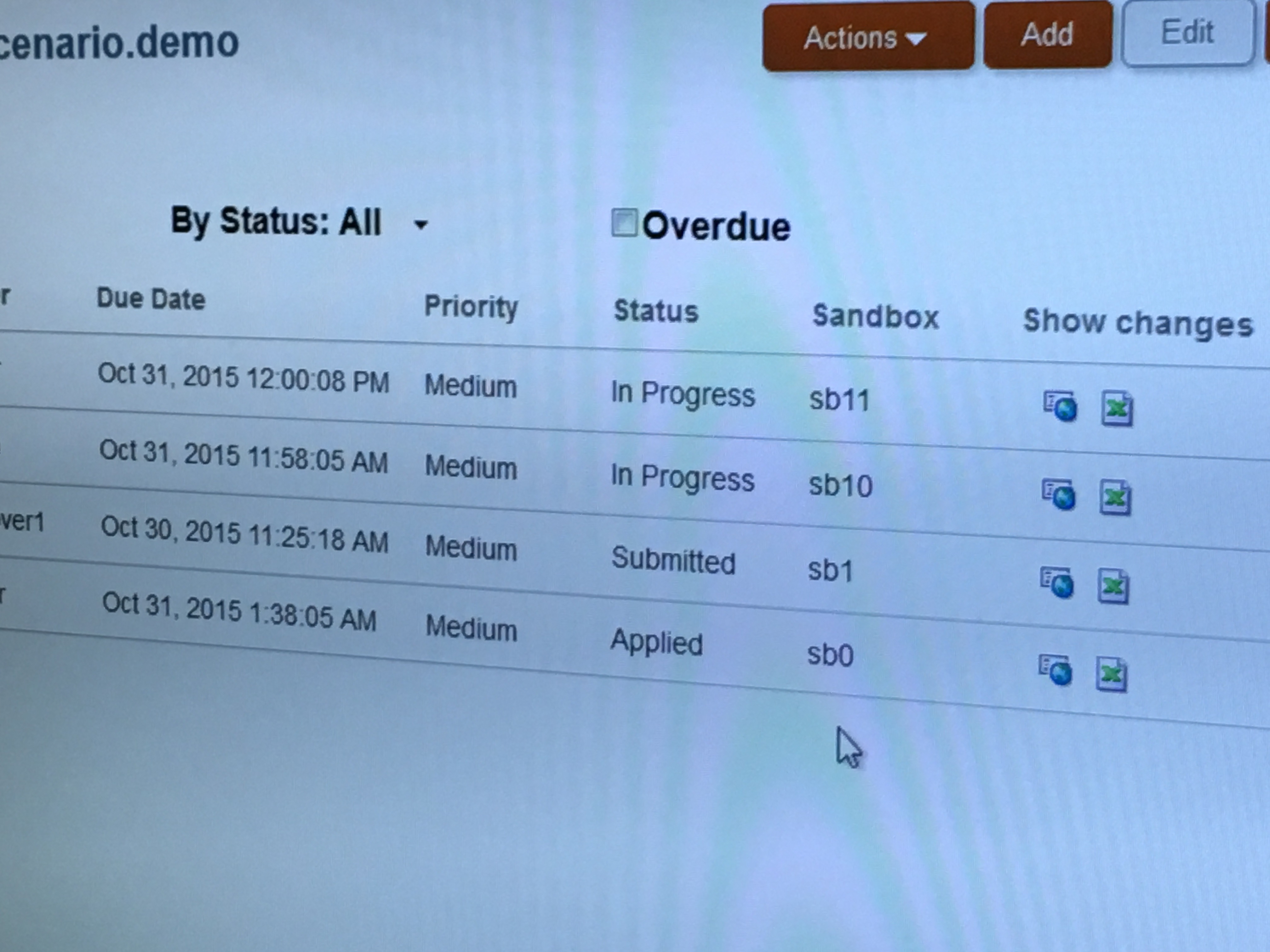 Users can create sandbox version of their essbase cubes. The concept of sandboxing is not new, and is available in PBCS today. However, ESSCS takes it to a different level by allowing an approval process. Users create sandboxes, and different users can approve or reject those changes to be moved into the production cube.